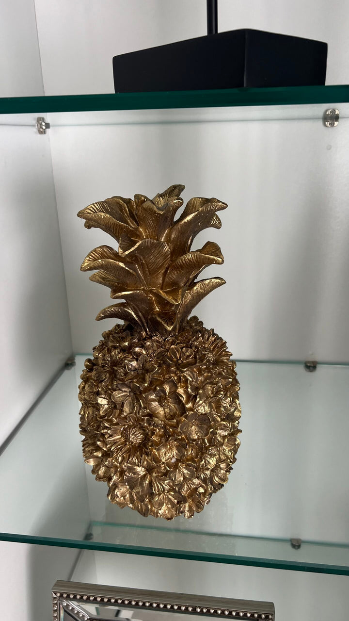 Crafted with the utmost attention to detail, this pineapple decor piece is a testament to fine craftsmanship and artistic expression. The radiant gold finish exudes a sense of extravagance and grandeur, making it the focal point of any room.