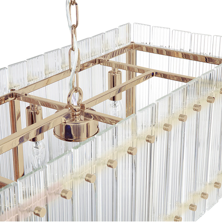 Slender and glamorous the Allure evokes glamour of 1960s Italian lighting, bringing drama to an elegant urban space. Arranged on a sleek metal frame with fluted glass panels, providing a dramatic play of light and softly diffused glow.