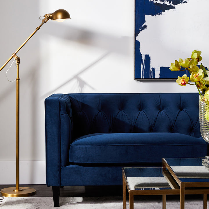 Anton 3 Seater Tufted Sofa | Navy Velvet