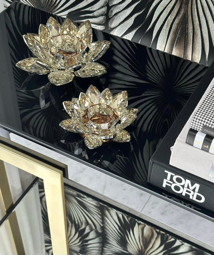 This pair of Florence Candle Holders are the unique touch of luxury your space is missing. The crystallised surface offers an intricate reflection creating life in any space. It is recommended to be paired with the Large Florence Candle Holder.