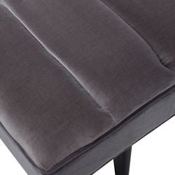A contemporary take on a classic silhouette, the chic Fricourt panelled ottoman adds instant luxe with its plush charcoal grey velvet upholstery, panelled detailing and piping finish with slender black timber legs supporting its tufted frame. Classic contemporary in design, the Fricourt panelled bench ottoman is the perfect accent piece for an elegantly styled bedroom, entry or additional living room seating. A beautiful complement to any interior.